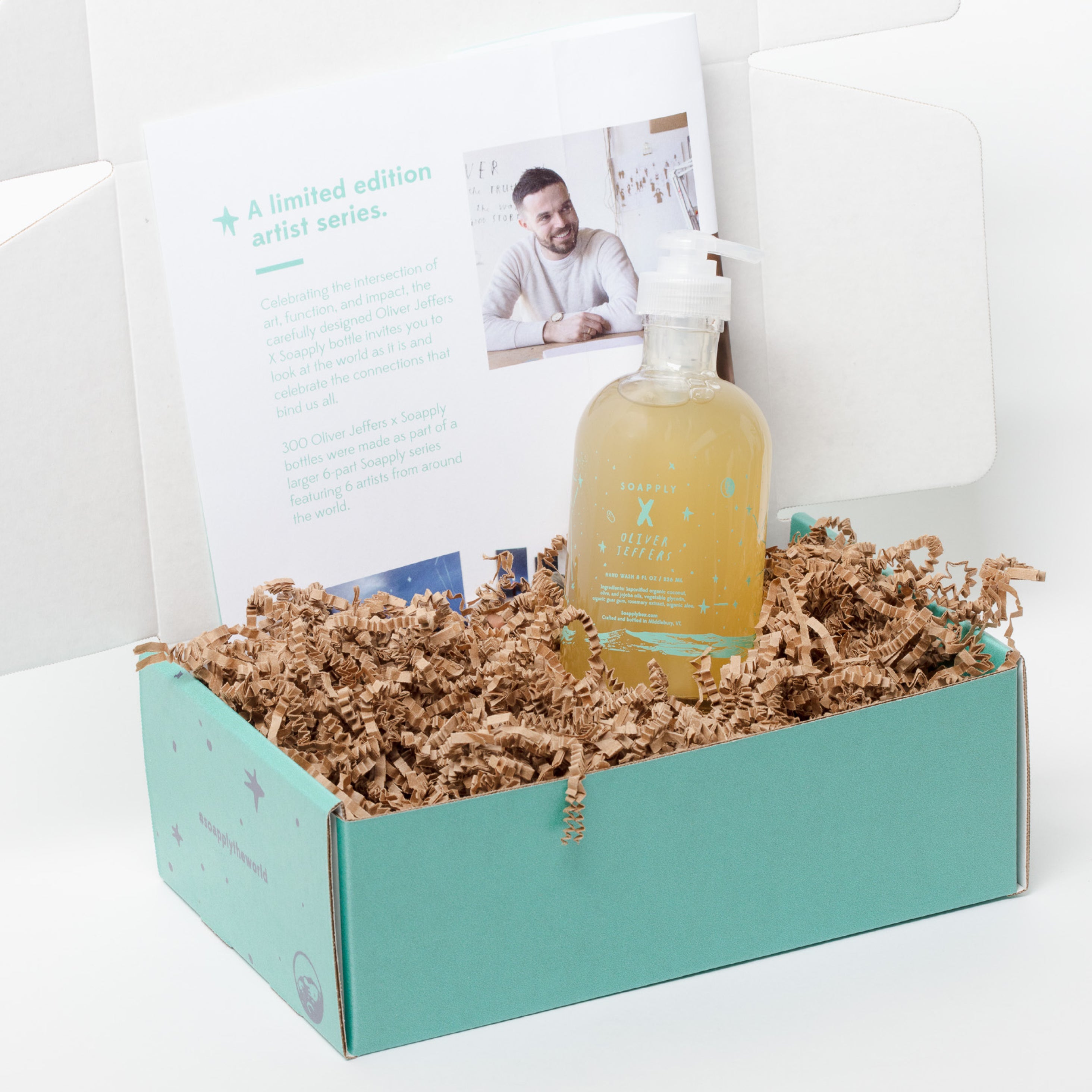 Oliver Jeffers x Soapply is part of a limited-edition bimonthly artist subscription. Jeffers is the first of 6 hand-picked artists being featured.